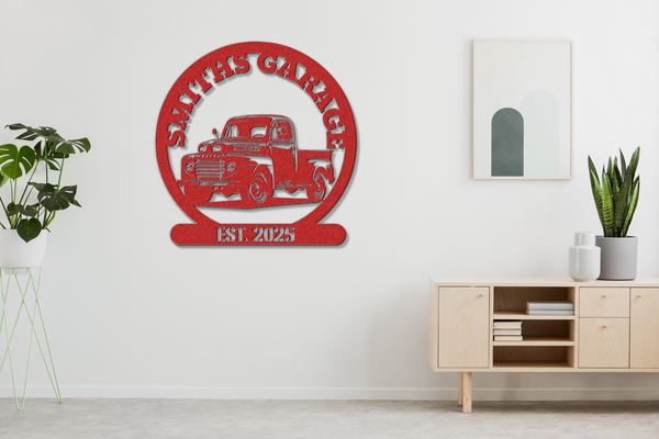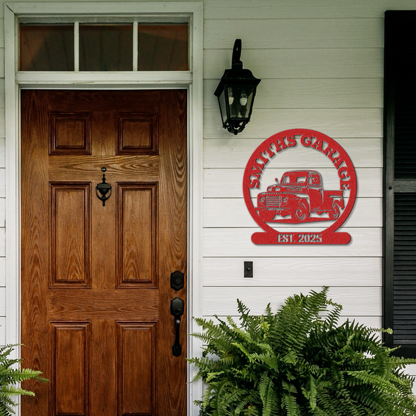 Metal Garage Sign with Name