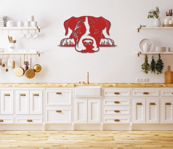Bring warmth and personality to your home with this exquisite Staffordshire Terrier metal wall art, creating a welcoming atmosphere that celebrates your beloved pet.